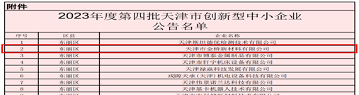2023年,新材料公司深入落實集團全面創(chuàng)新發(fā)展戰(zhàn)略,通過產(chǎn)品分級、原料資源開發(fā)、技術及工藝創(chuàng)新、組織效能優(yōu)化等舉措,加速產(chǎn)品研發(fā),加快高成長企業(yè)梯度培育,在生產(chǎn)經(jīng)營、企業(yè)培育、組織建設等方面逐步邁向高質量發(fā)展。天津市金橋新材料有限公司被評定為“2023年第四批入庫雛鷹企業(yè)”,“第9批入庫科技型中小企業(yè)”,“第四批創(chuàng)新型中小企業(yè)”。